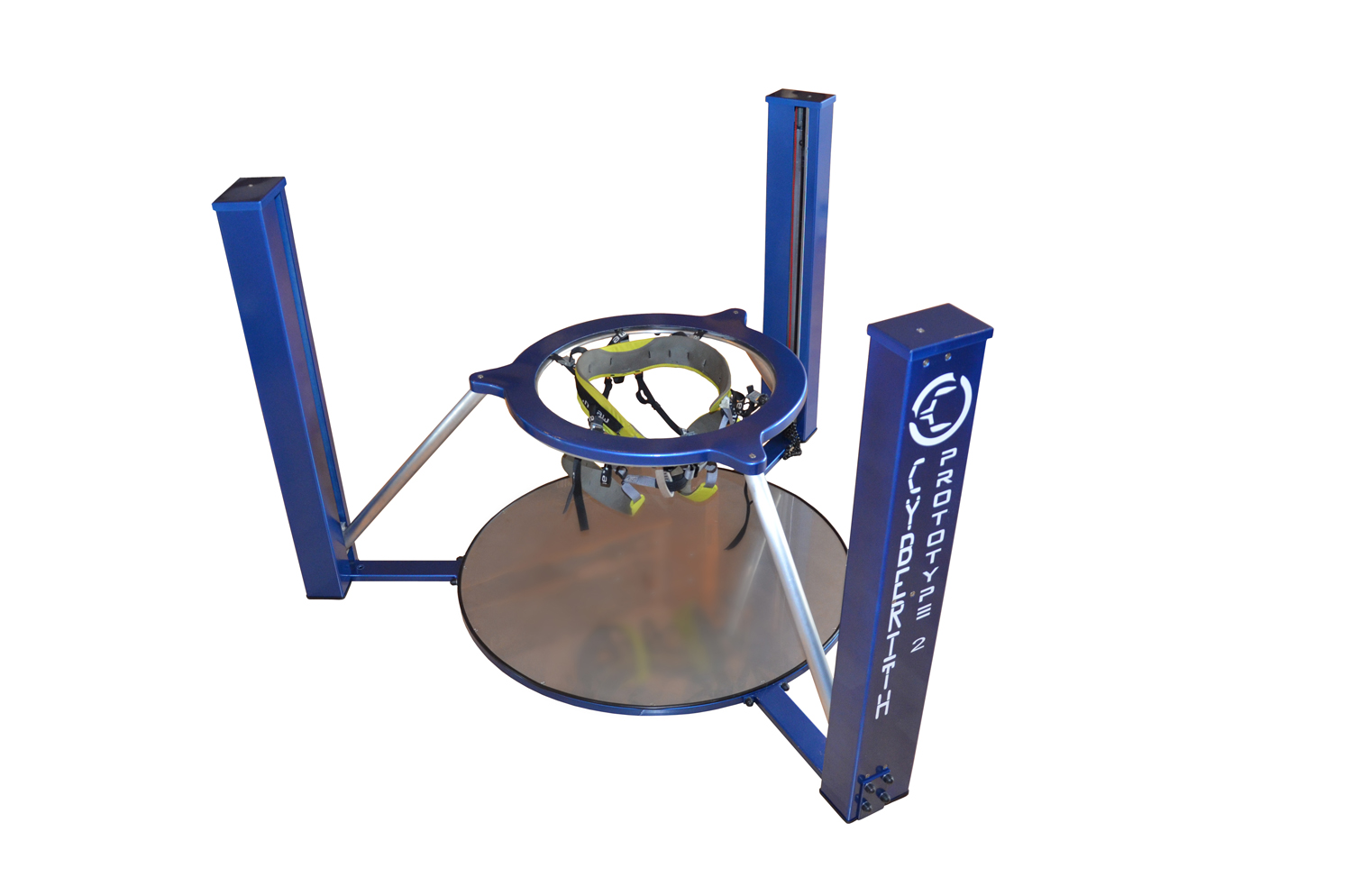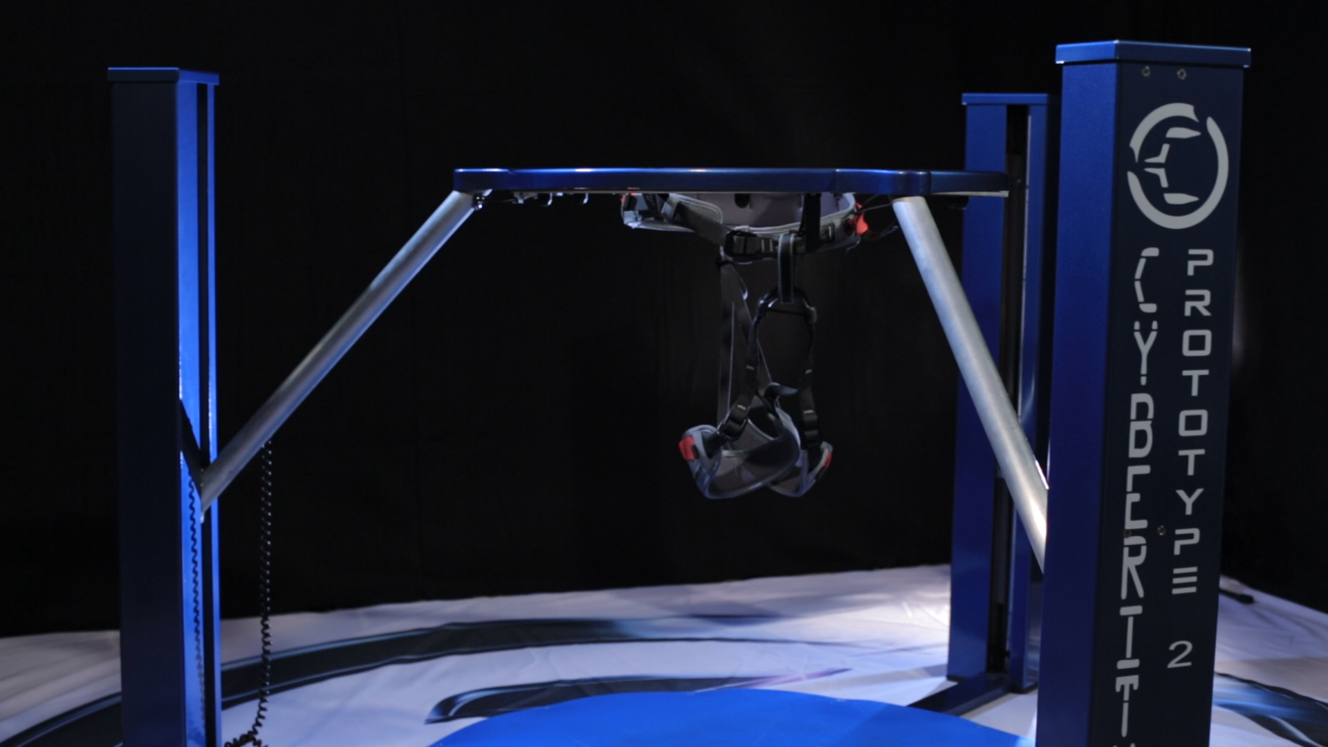 Der Cyberith Virtualizer besitzt einen auf Hüfthöhe angebrachten Ring, welcher einen davon abhält gegen die Wand zu rennen.